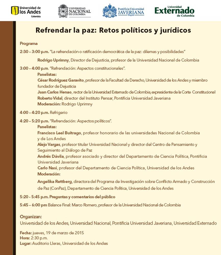 La Asociación Colombiana de Universidades (Ascun) invita a participar en el evento Refrendar la Paz, que se realizará este jueves 19 de marzo del 2015 a partir de las 2:30 p.m.