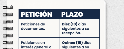 Por eso es importante tener claros los términos de respuesta, contados en días hábiles, son: diez (10) días para solicitudes de documentos, quince (15) días para peticiones de interés general o particular y treinta (30) días para peticiones de consulta. La prórroga debe solicitarse antes del vencimiento del término y sólo puede hacerse una vez.