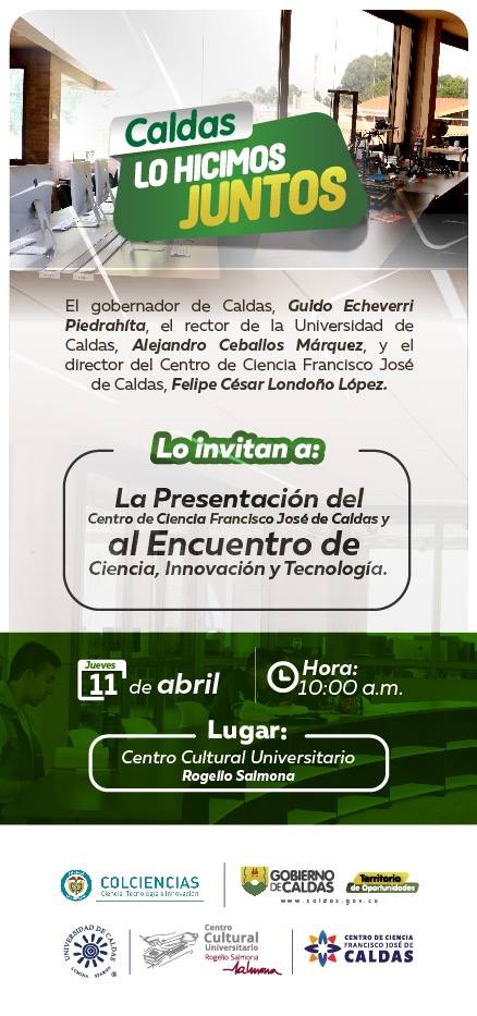 Como Rector de la Universidad de Caldas espero y deseo que lo aquí descrito sea de utilidad en el entendimiento de los propósitos de internacionalización y proyección que animan a esta Administración. De igual modo, sirva para animarlos a convertirse en actores protagónicos en las actividades de cooperación internacional con otras universidades, lo que nos ayudará a consolidar una Universidad líder en el ámbito regional e internacional.