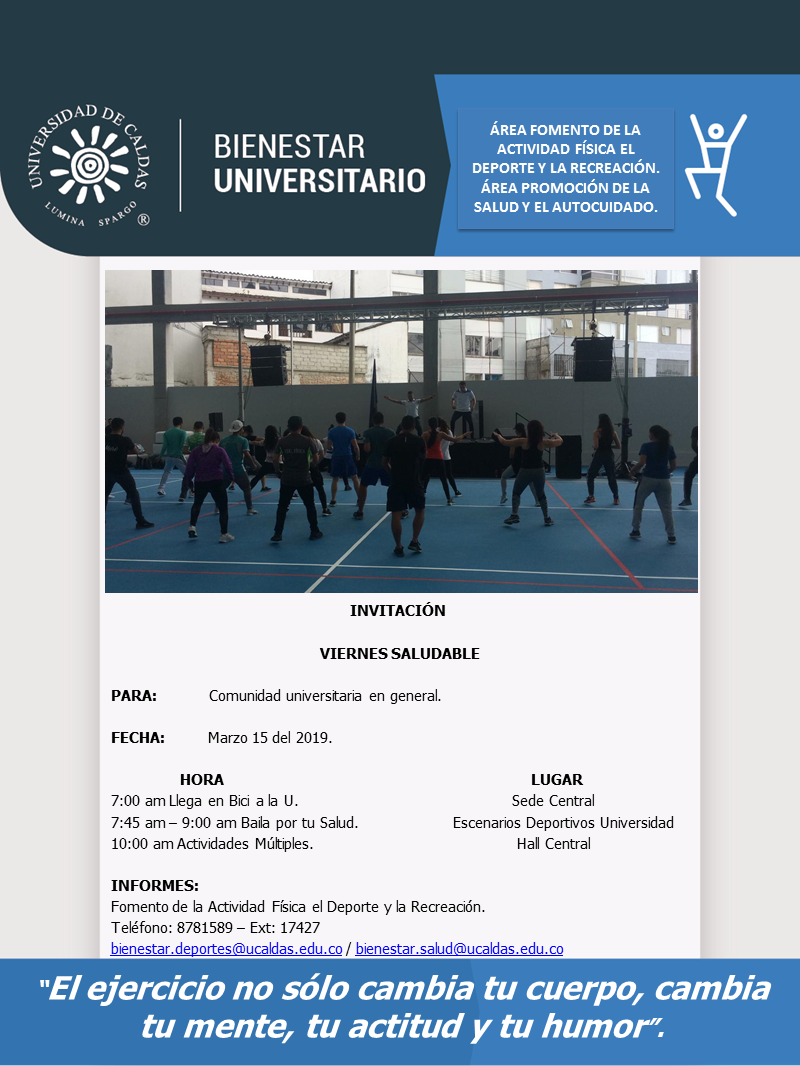 La oficina de Bienestar de la Universidad de Caldas, invita a toda la comunidad universitaria para que participe del día Internacional de la felicidad, el cual se llevará a cabo el próximo 20 de marzo.