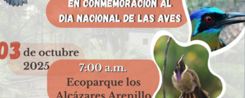 El Grupo Interno de Trabajo de Sostenibilidad Ambiental invita a empleados administrativos, docentes y estudiantes a participar en la jornada de avistamiento de aves, que se realizará el próximo 3 de octubre de 2025 en el Ecoparque Los Alcázares Arenillo, a partir de las 7:00 a. m.