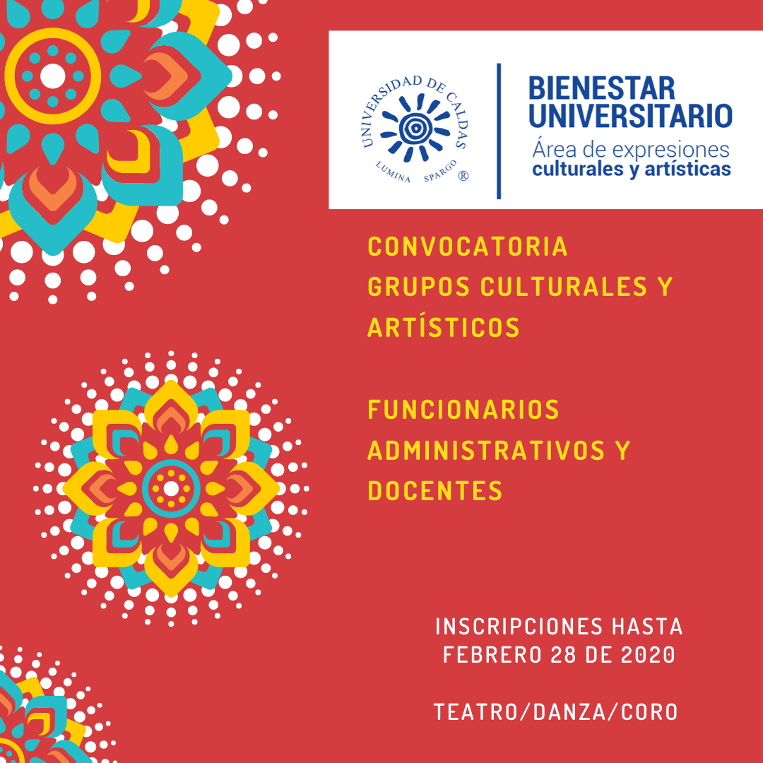 Hasta el viernes 28 de febrero se encuentra abierta la convocatoria para los funcionarios administrativos y docentes de la Universidad de Caldas, interesados en integrar los grupos culturales institucionales de Danza, Teatro y Coro, coordinados por la Oficina de Bienestar Universitario a través del área de Expresiones Culturales y Artísticas.