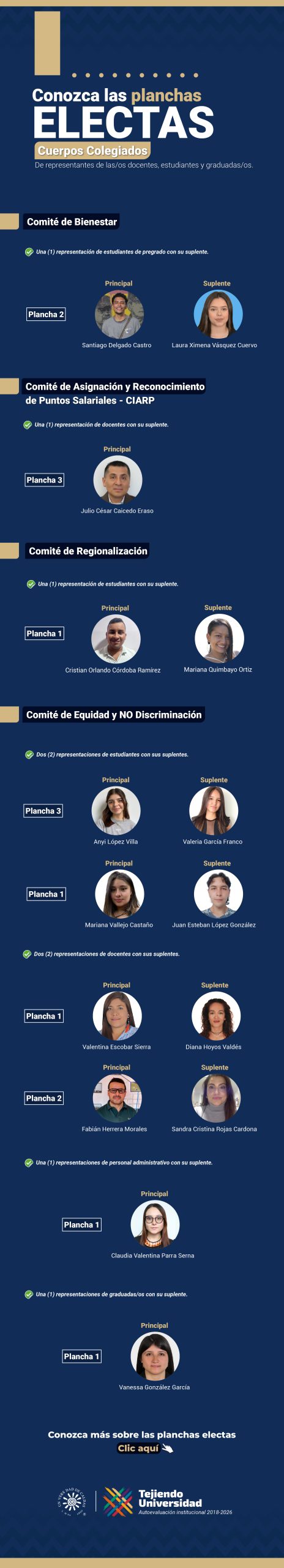 La universidad agradece a todos los miembros por su participación activa en este proceso democrático y felicita a los ganadores, quienes asumirán un papel crucial en la representación de sus respectivos estamentos y en la toma de decisiones.