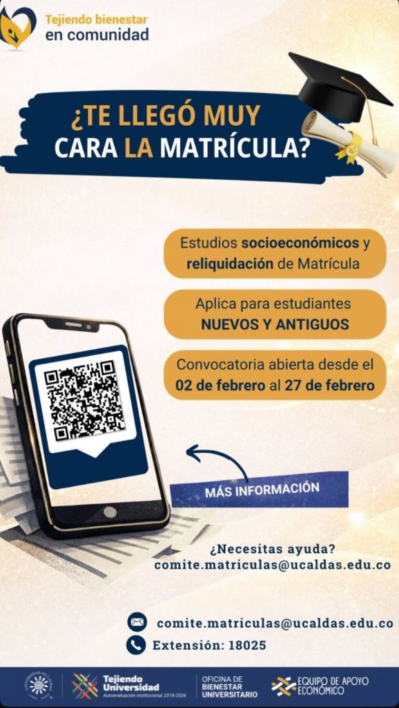 Una vez reúnas toda la documentación, debes enviarlo al Comité de Matrículas al siguiente correo comite.matriculas@ucaldas.edu.co. para más información puedes comunicarte al contacto de bienestar universitario 8781500 extensiones 18025 y 18020. Tu caso será evaluado, asegúrate de cumplir con todos los requisitos para que tu solicitud sea tramitada sin inconvenientes.