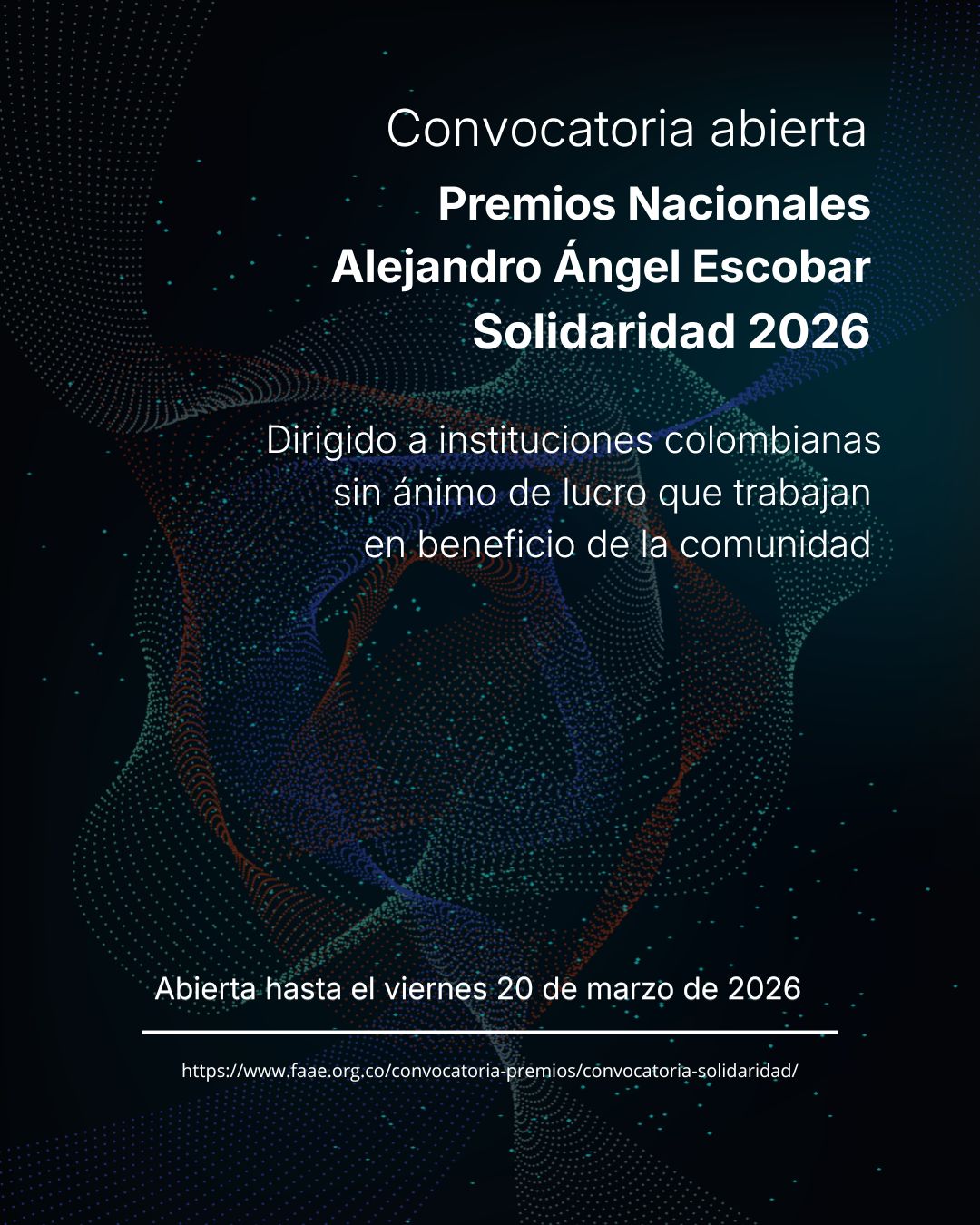 Más información: https://www.faae.org.co/convocatoria-premios/convocatoria-solidaridad/