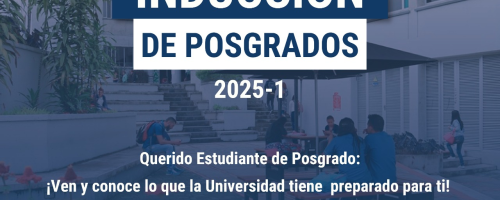 Se llevará a cabo la jornada de inducción dirigida a los nuevos estudiantes de los programas de posgrado del periodo 2025-1. El encuentro será el jueves 29 de mayo, de 2:30 p.m. a 5:30 p.m., en el Auditorio Roberto Vélez del Edificio Orlando Sierra, bloque C, segundo piso.