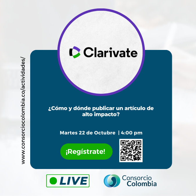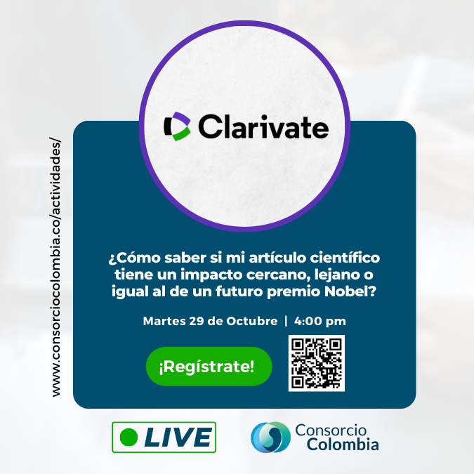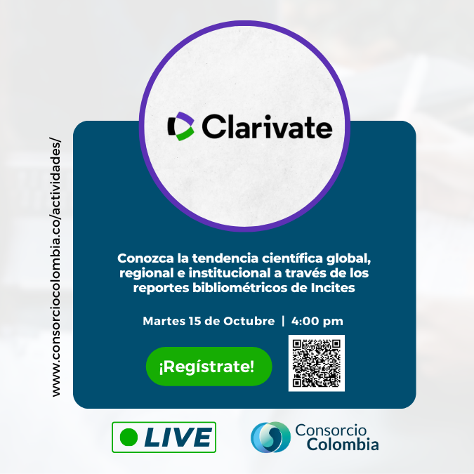 Después continuara el 15 de Octubre la charla «Conozca la tendencia científica global, regional e institucional a través de los reportes bibliométricos de Incites » a cargo de Clarivate. La sesion se realizará de 4:00 p.m. a 5:00 p.m.