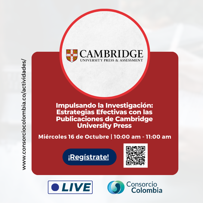 Durante este mes, también se ofrecerán sesiones como « Publicación Cambridge » que se realizará el 16 de Octubre a las 10:00 am y Capacitación de la plataforma Nature.com» el 21 de Octubre a las 3:00 Pm.