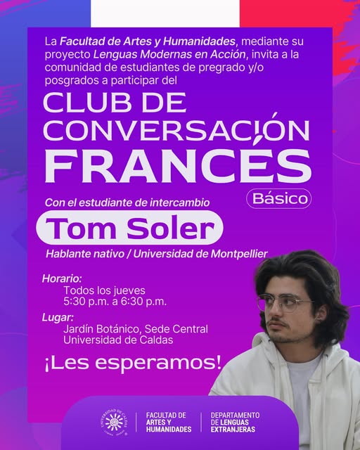 La Facultad de Artes y Humanidades invita a sumarse al Club de Conversación en Francés, un espacio ideal para mejorar las habilidades en este idioma, incluso si se es principiante. Bajo la guía de Tom Soler, estudiante de intercambio y hablante nativo de la Universidad de Montpellier, podrán aprender y practicar de una manera dinámica y amena.