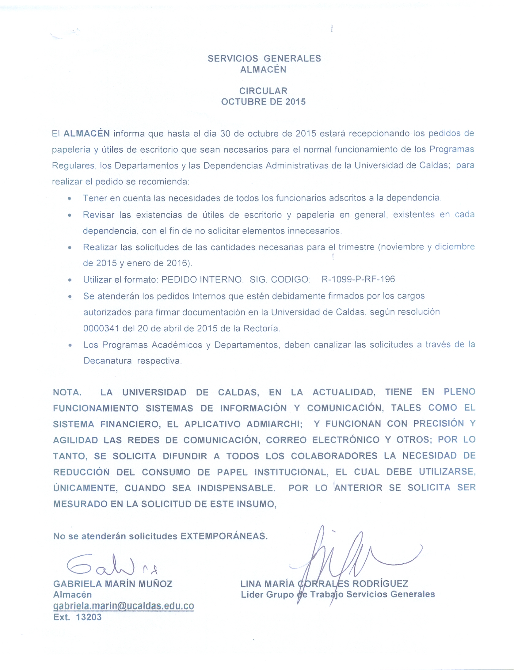 Comunidad U. de Caldas, hasta el 31 de julio del 2017 podrán realizar pedidos de papelería y útiles de escritorio