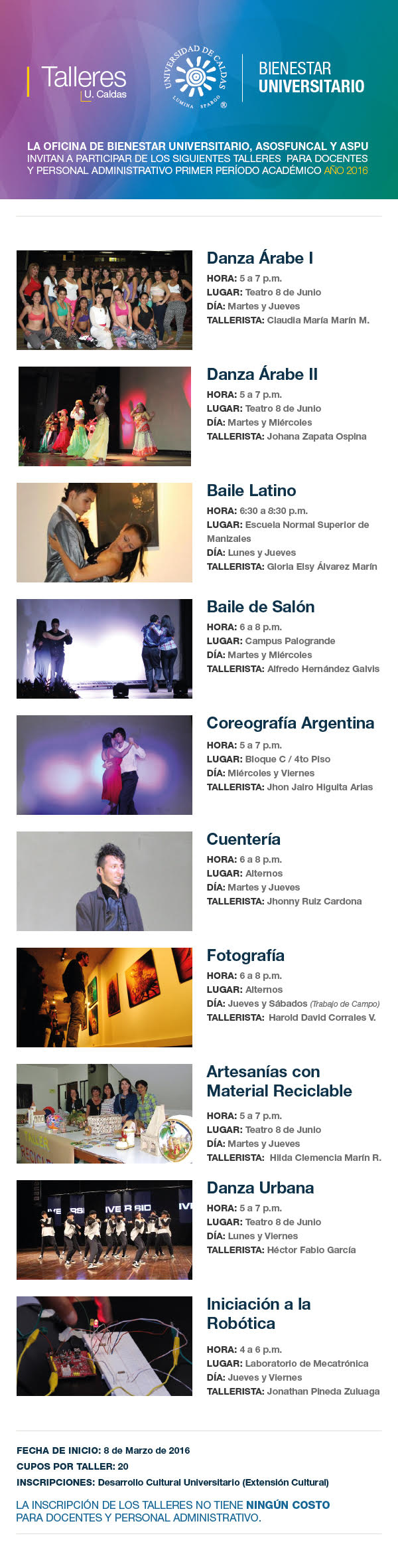 Talleres de Extensión U. de Caldas – inscripciones abiertas