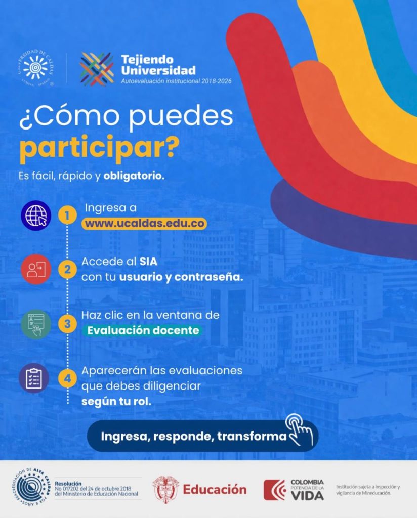 Tu participación es fundamental para seguir construyendo una Universidad de Caldas más sólida, incluyente y comprometida con la excelencia educativa.
