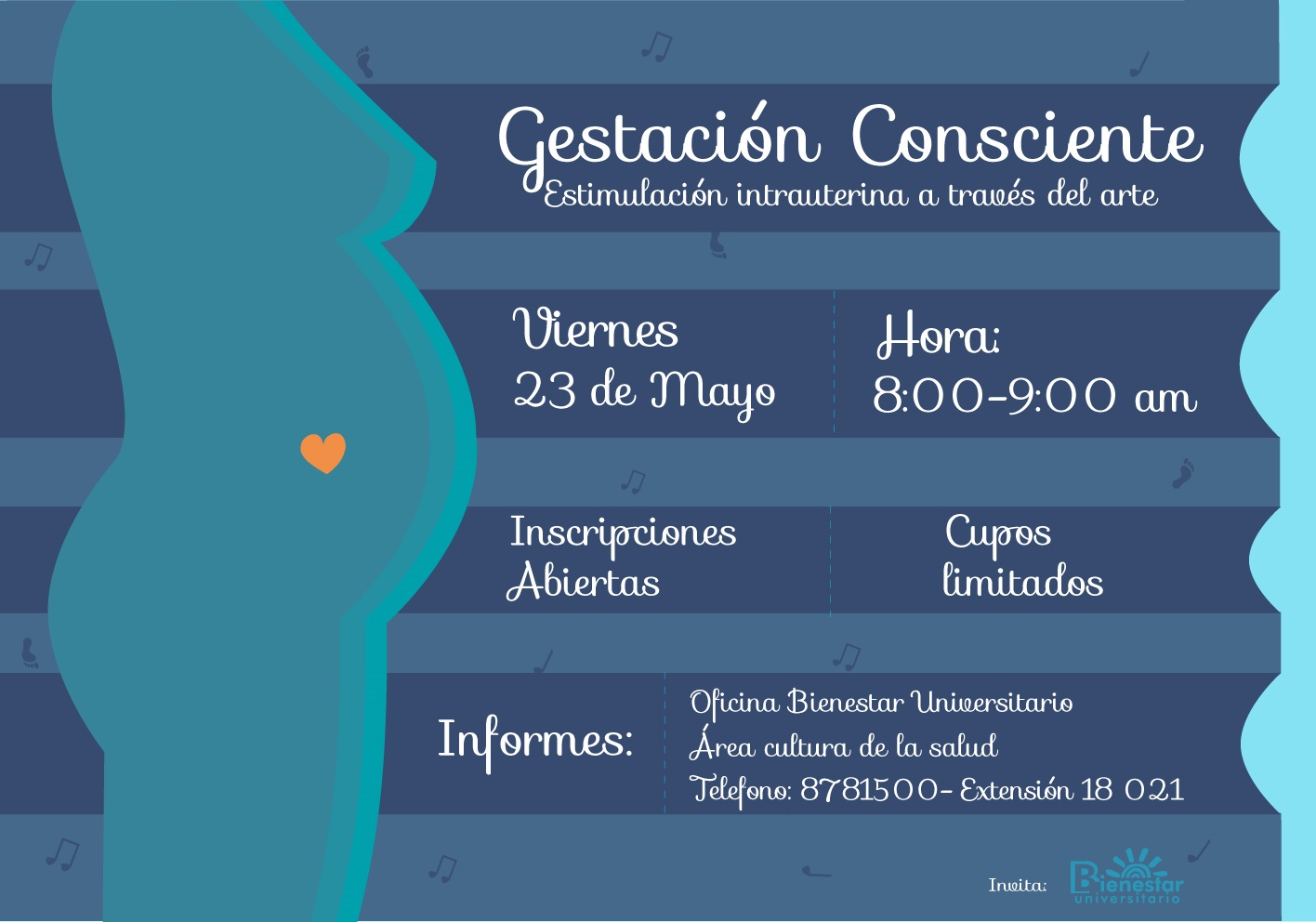 Descripción: la Oficina de Bienestar Universitario de la U. de Caldas invita a este curso, sobre estimulación intrauterina a través del arte.
